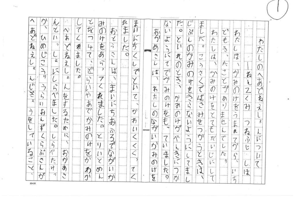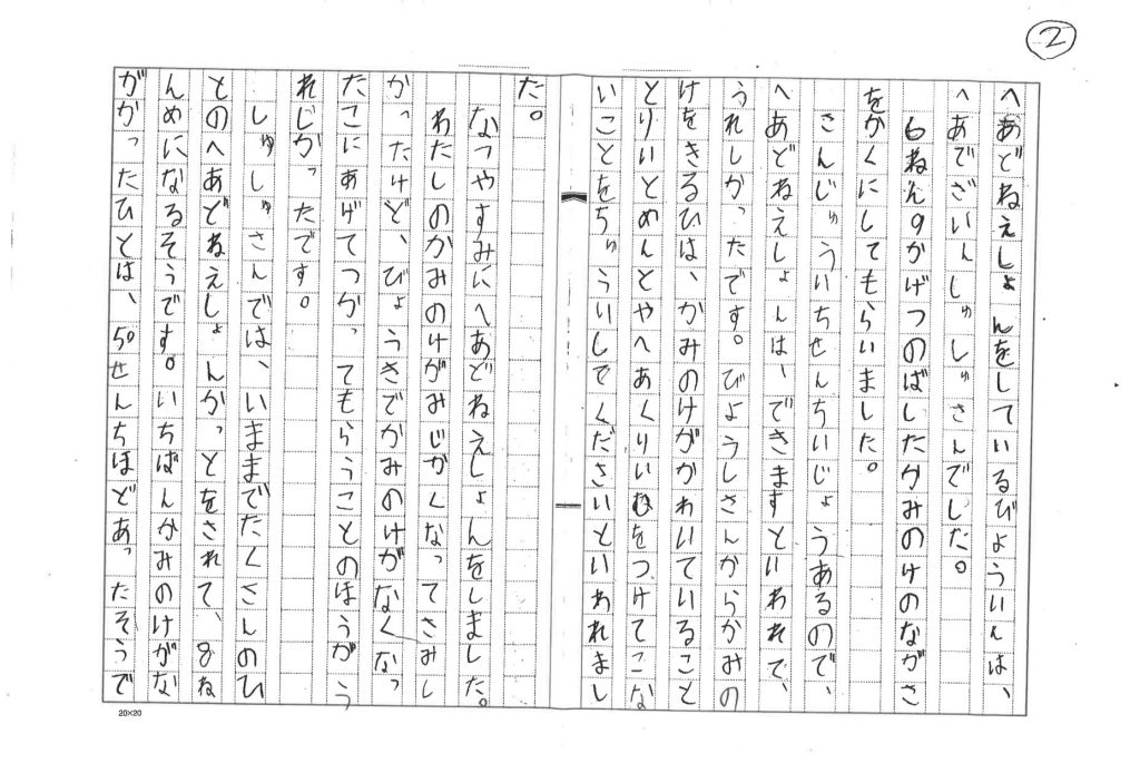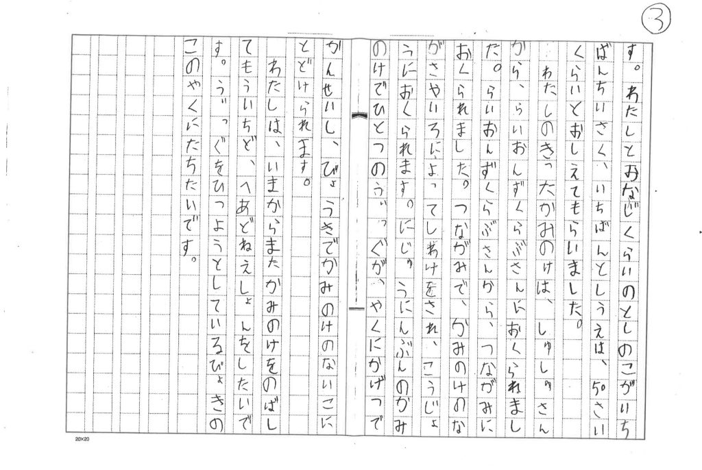 そして、今回のヘアドネーションの経験をもとに、夏休みの宿題としてレポートを作成され先日わがクラブへ送って頂きました。