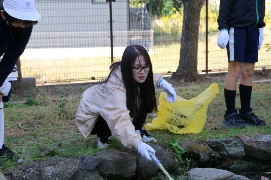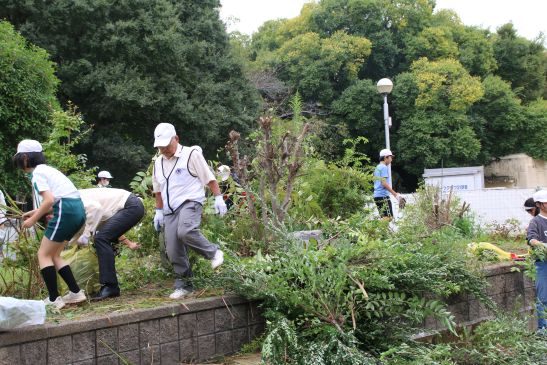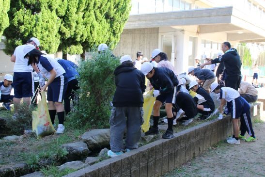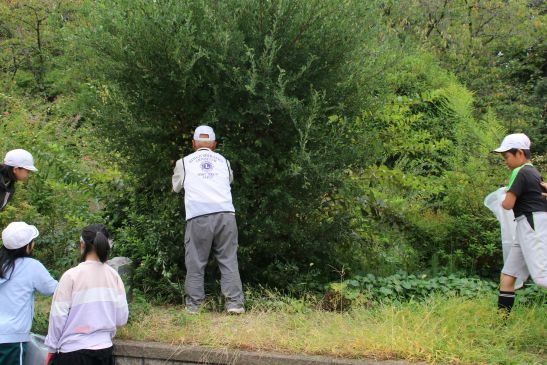 日野里小学校のビオトープを6年生の児童と一緒に清掃を行いました。