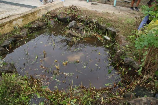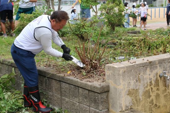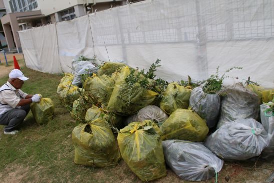 普段用務員の方が手入れをしてくださっているとかで、あまり手を入れるところもなく、雑草と水路の中の藻を取りました。