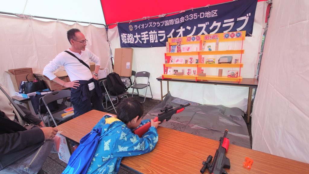 ライオンズクラブの奉仕活動を知っていただくために作成したパンフレットとオリジナルボールペンを配布しました。多くの方にブースに来ていただけるように防災グッズ等の景品を用意して射的を実施しました。献血活動のぼりも立てて啓蒙活動した結果、180名の方がブースに来られ、ライオンズクラブをPR出来ました。