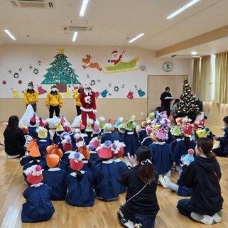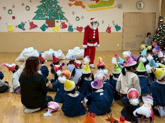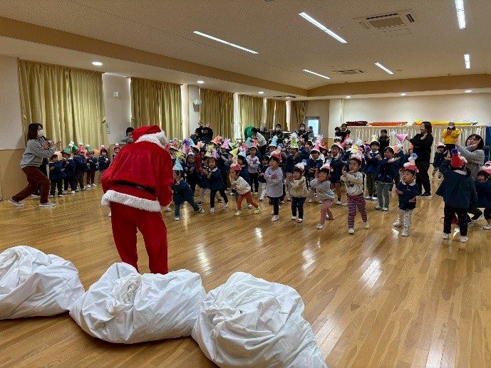 0歳児から6歳児まで、みんな、サンタさんが来てくれたと大喜びでした。